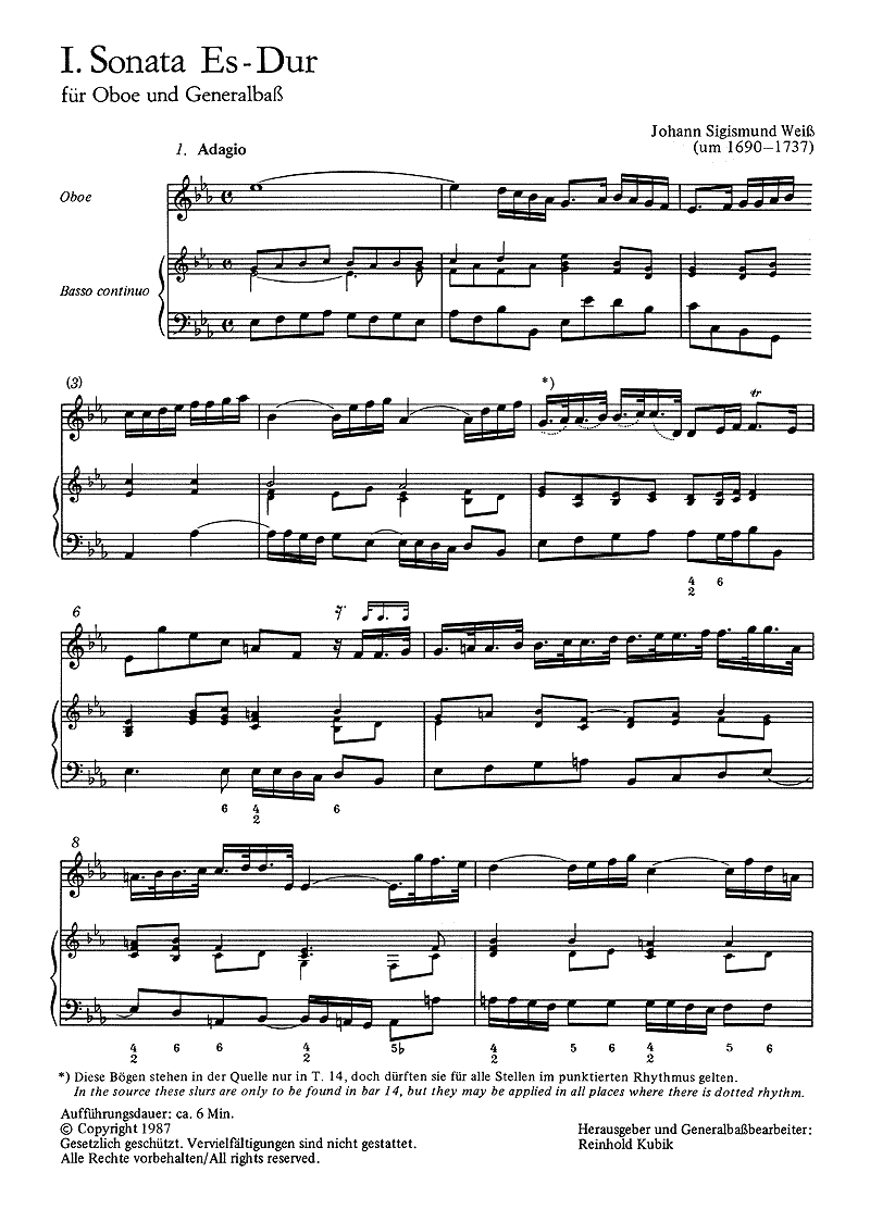 Weiss: Zwei Sonaten - Muzieknotatie-voorbeeld