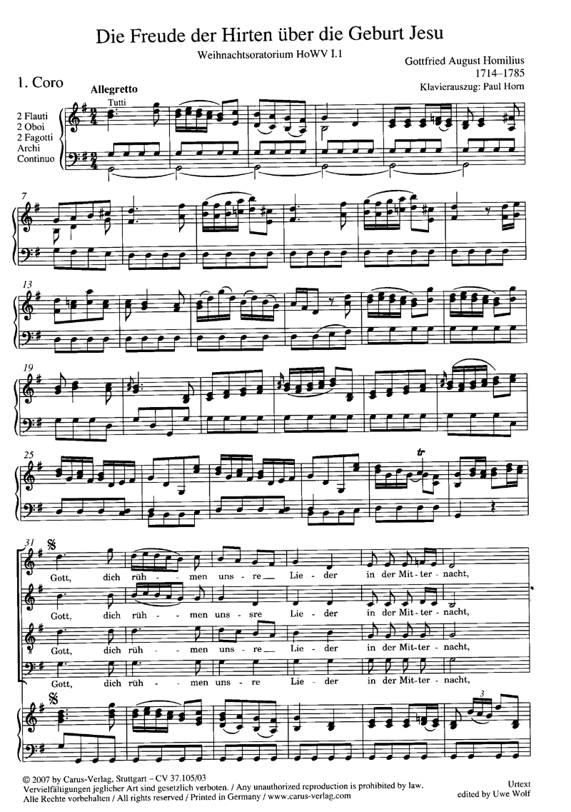 Die Freude der Hirten über die Geburt Jesu - Muzieknotatie-voorbeeld