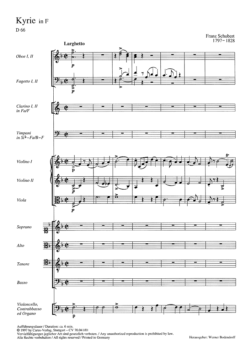 Kyrie in F (Chor SATB; 2 hobo's; 2 Fagotten; 2 trompet Bb; pauken; 2 violen; altviool; Basso continuo), koorpartituur