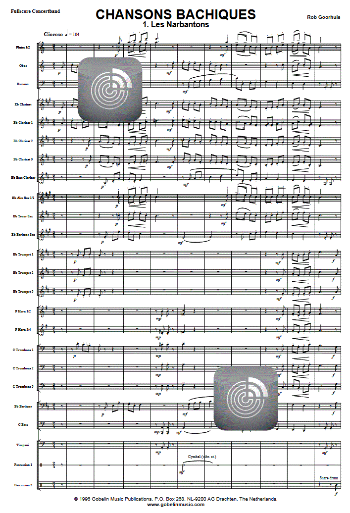 Chansons Bachiques - klik hier Chansons Bachiques (harmonieorkest), partituur en delen