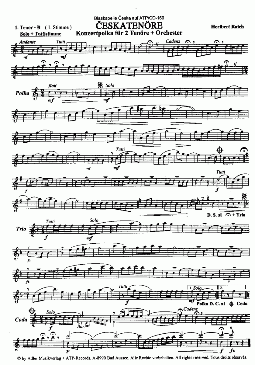 Ceskatenöre - klik hier Ceskatenöre (harmonieorkest; tenorhoorn), Samenvatting van de partituur en stemverzameling