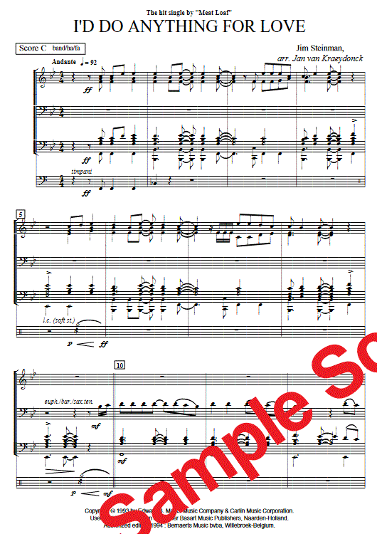 I'd Do Anything For Love - klik hier I'd Do Anything For Love (harmonieorkest), particell