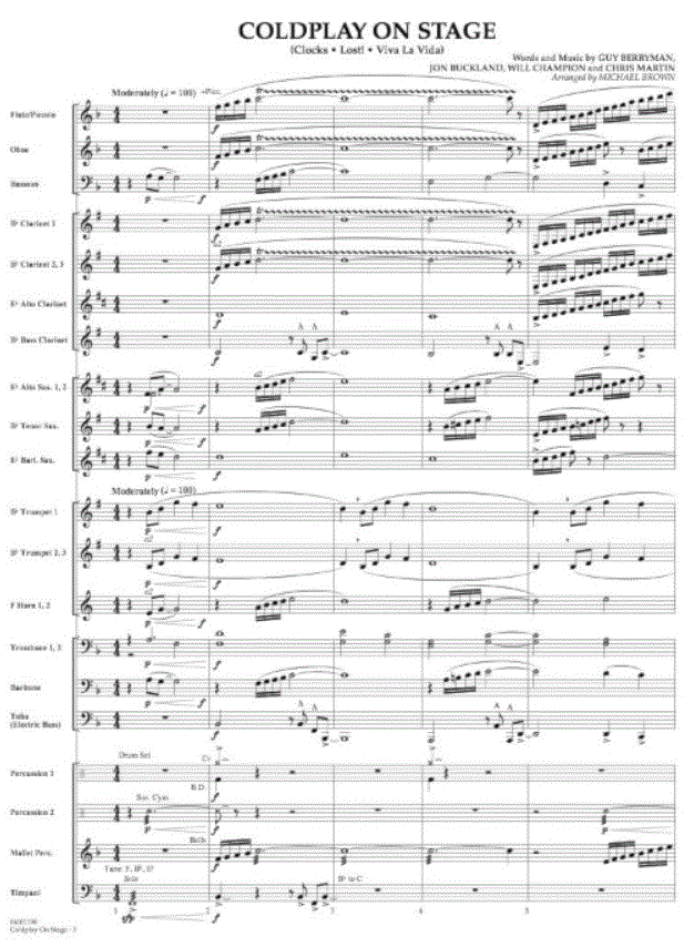 Coldplay on Stage - klik hier Coldplay on Stage (harmonieorkest), partituur en delen