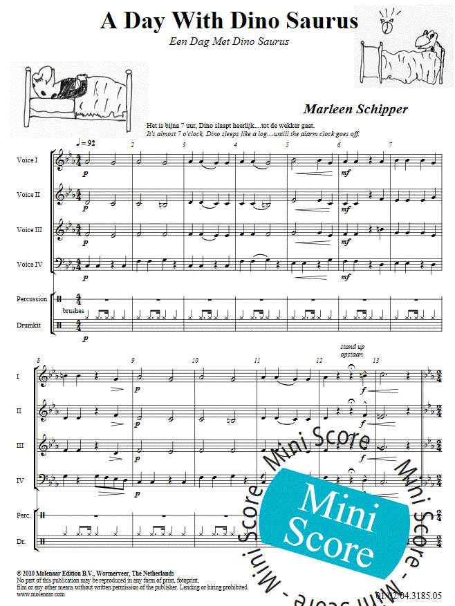 A Day With Dino Saurus - klik hier A Day With Dino Saurus (harmonieorkest; 4stimmig variable Besetzung; slaginstrument), partituur