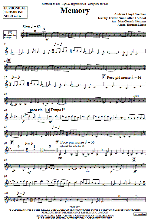 Memory (from 'Cats') - Muzieknotatie-voorbeeld