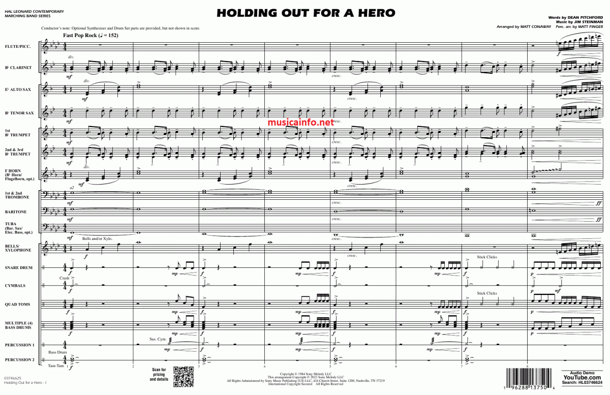 Holding Out for a Hero - klik hier Holding Out for a Hero (harmonieorkest; drumfanfare), partituur