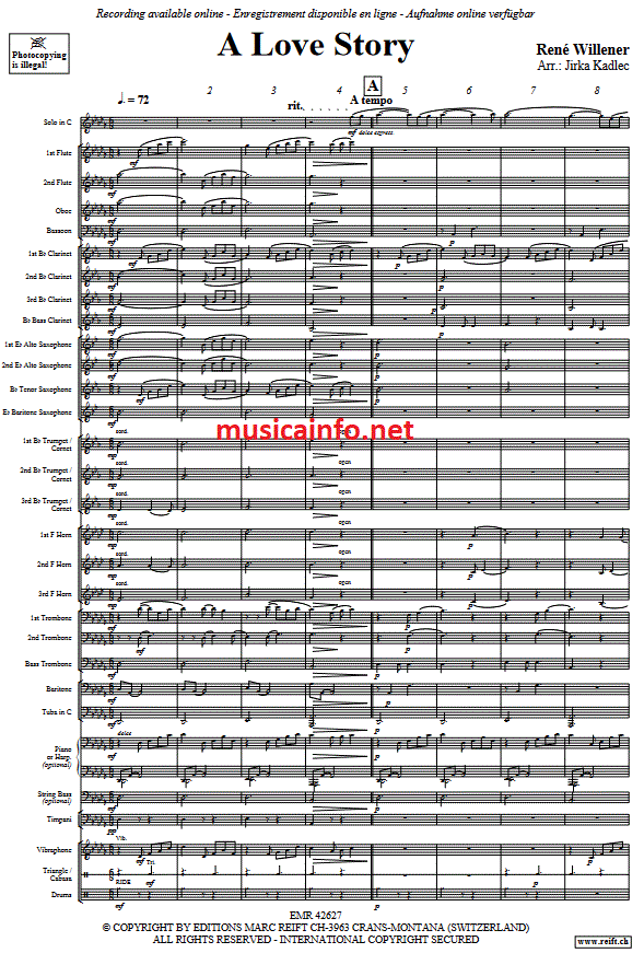 A Love Story - klik hier A Love Story (harmonieorkest; oder; fanfare; Solo), partituur en delen