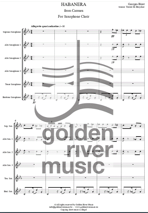 Habanera from Carmen for saxophone choir, score 6 p. and parts (sopr. sax, 3 alto sax, tenor sax, bari. sax).