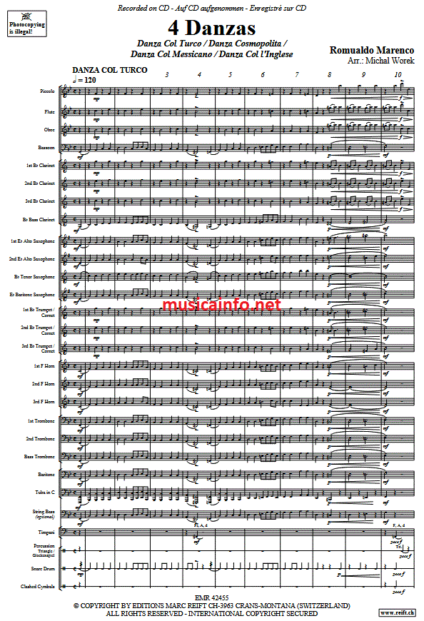 Aanvullende informatie/inhoud Romualdo Marenco's "4 Danzas", gearrangeerd door Michal Worek, is een waardevolle aanvulling voor blaasorkesten en brassbands van gemiddelde leeftijd. De combinatie van historische en muzikale context met een praktische aanpak biedt ensembles de mogelijkheid om te werken aan stilistisch diverse en sonisch aantrekkelijke muziek. Deze bewerking ondersteunt niet alleen de muzikale educatie, maar breidt het repertoire ook uit met gevarieerde en uitdagende werken die ideaal zijn voor concertprogramma's.