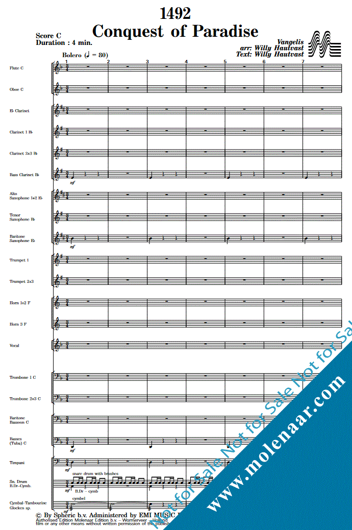 Aanvullende informatie/inhoud 1492: Conquest of Paradise is een historische film van Ridley Scott uit het jaar 1992, precies 500 jaar na de ontdekking van Amerika. De filmmuziek, gecomponeerd door Vangelis, is wereldberoemd geworden. Dit arrangement werkt fantastisch, vooral als het (optionele) koor meedoet.