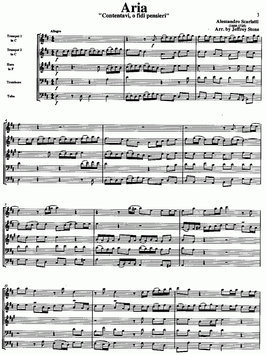 ARIA 'CONTENTAVI, OF FIDI PENSIERI' - Muzieknotatie-voorbeeld