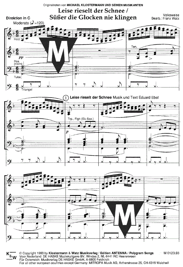 Leise rieselt der Schnee / Süsser die Glocken nie klingen - klik hier Leise rieselt der Schnee / Süsser die Glocken nie klingen (harmonieorkest), Samenvatting van de partituur en stemverzameling
