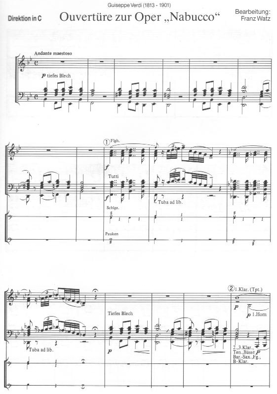 Nabucco Ouverture - klik hier Nabucco Ouverture (harmonieorkest), Samenvatting van de partituur en stemverzameling