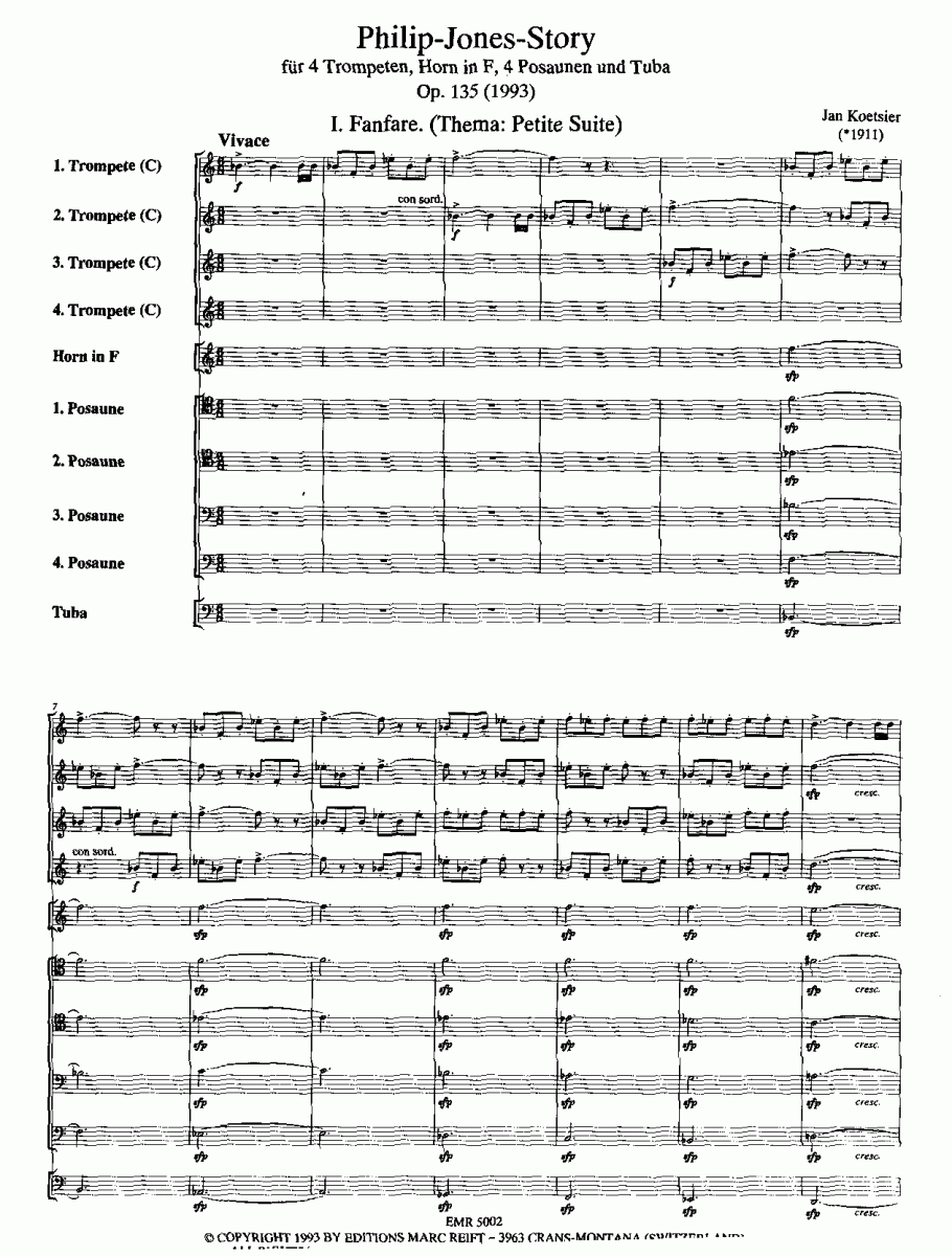 Philip Jones Story - klik hier Philip Jones Story (4 trompet Bb; Hoorn; 4 trombones; tuba), partituur en delen