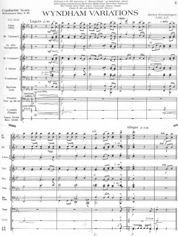 Wyndham Variations (harmonieorkest; jeugdorkest), Dirigierpartitur