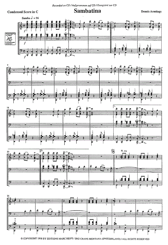 Sambatina - klik hier Sambatina (harmonieorkest), Samenvatting van de partituur en stemverzameling